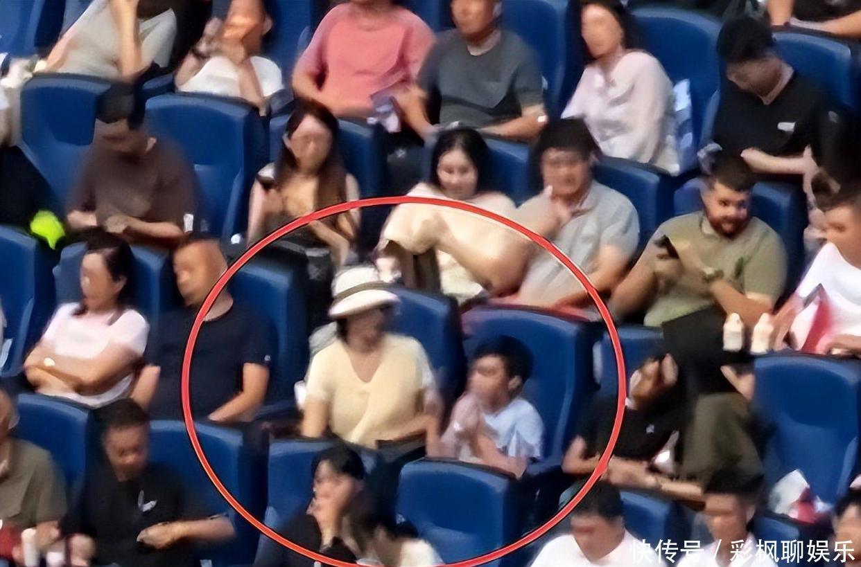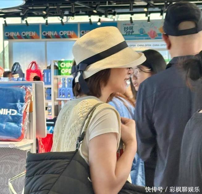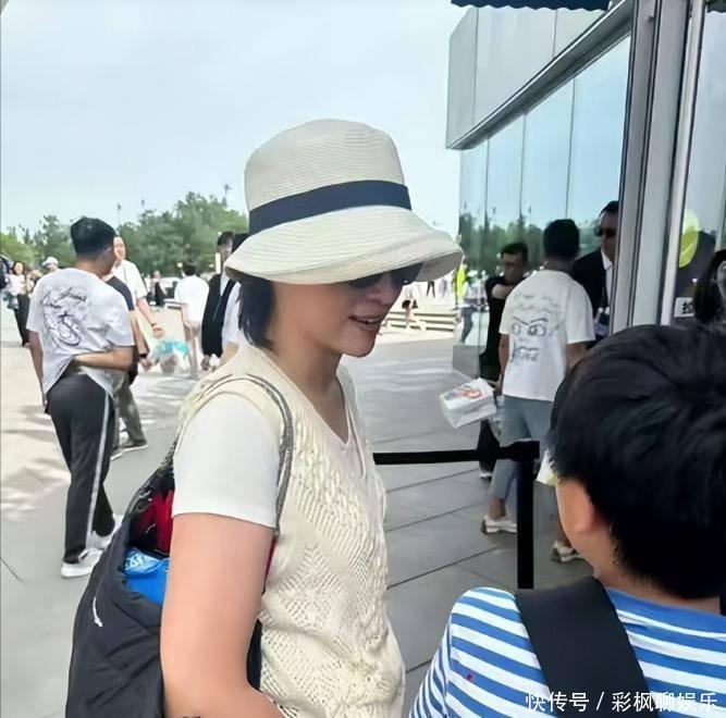 董卿带着孩子来观看网球比赛,或许是希望孩子能从竞技体育里有所收获。然而,从现场情形而言,52岁的董卿明显比她儿子更为亢奋。私底下的董卿向来极为低调,一贯不热衷于在自身装扮方面花费心思。此次带孩子外出,她的穿着十分简约,上身是米色镂空针织背心配白色短袖,下身搭配牛仔裤,还戴了帽子和墨镜。
